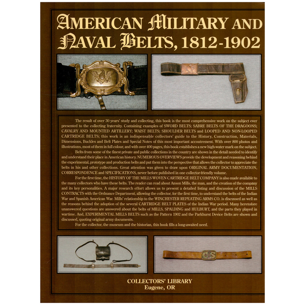 The reader can read about Anson Mills, the man, and the creation of the company and its key personalities. A major research effort allows us to present a detailed listing and discussion of the MILLS CONTRACTS with the Ordnance Department, allowing the collector, for the first time, to understand the belts of the Indian War and Spanish American War. Mills' relationship to the WINCHESTER REPEATING ARMS CO. is discussed as well as the reasons behind the adoption of the several CARTRIDGE BELT PLATES of the Indian War period