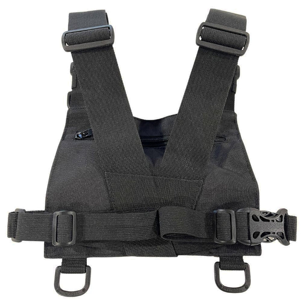 The Excalibur Rig Chest Mount system is the most versatile Excalibur mount on the market. It has been designed to provide almost unlimited adjustability. The horizontal belt can be worn at the waist or it can be adjusted to be up on the chest. The waist and shoulder straps are fully adjustable. Made from Polypro Webbing with black powder coated aluminum mounting bracket. Extra Loops for attaching other accessories and wire management.