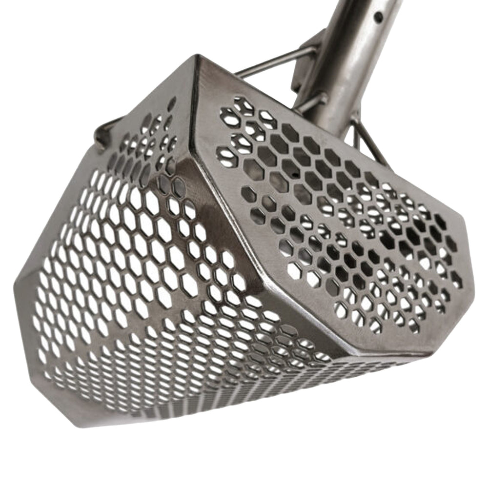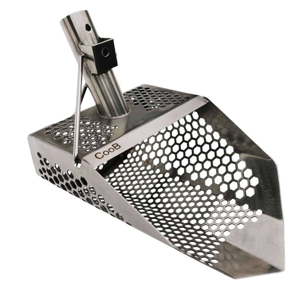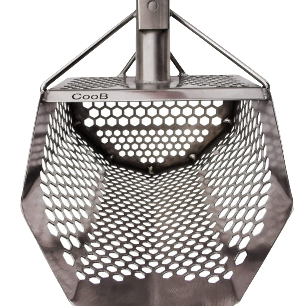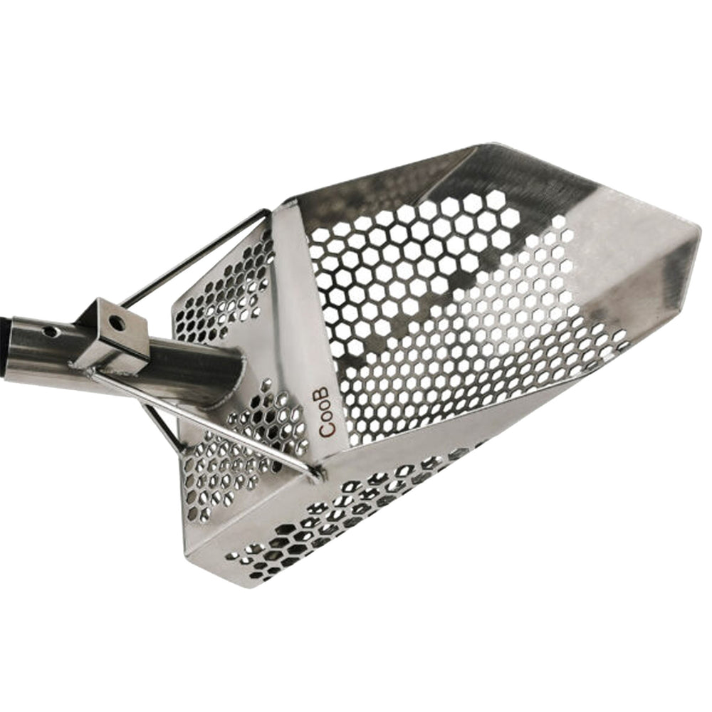 CooB 11.5" x 7" Stainless Steel Metal Detector Sand Scoop - Your Gateway to Uncover Hidden Treasures! Discover ancient coins and exquisite jewelry with ease. Designed with precision, this scoop features hexagon-shaped holes (10mm and 7mm) for efficient sifting, ensuring no valuable artifact escapes your grasp.