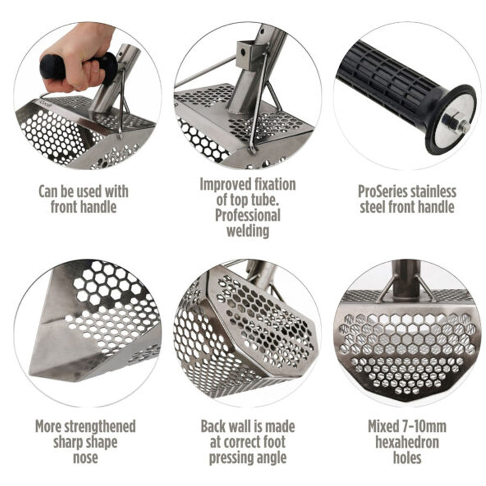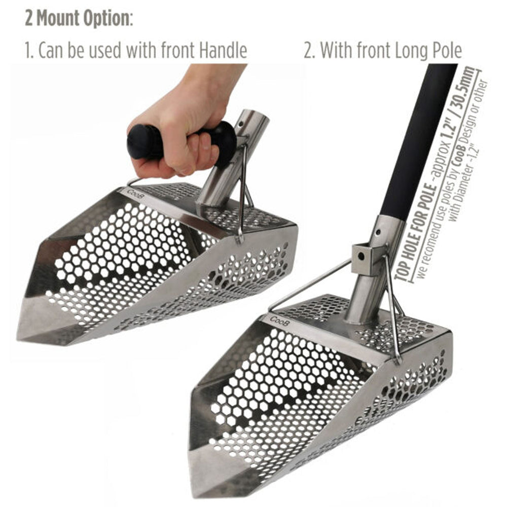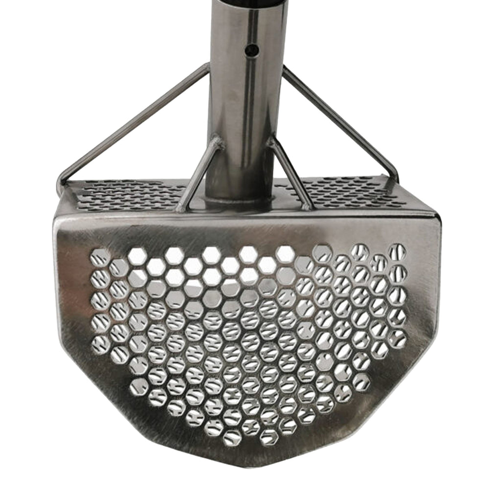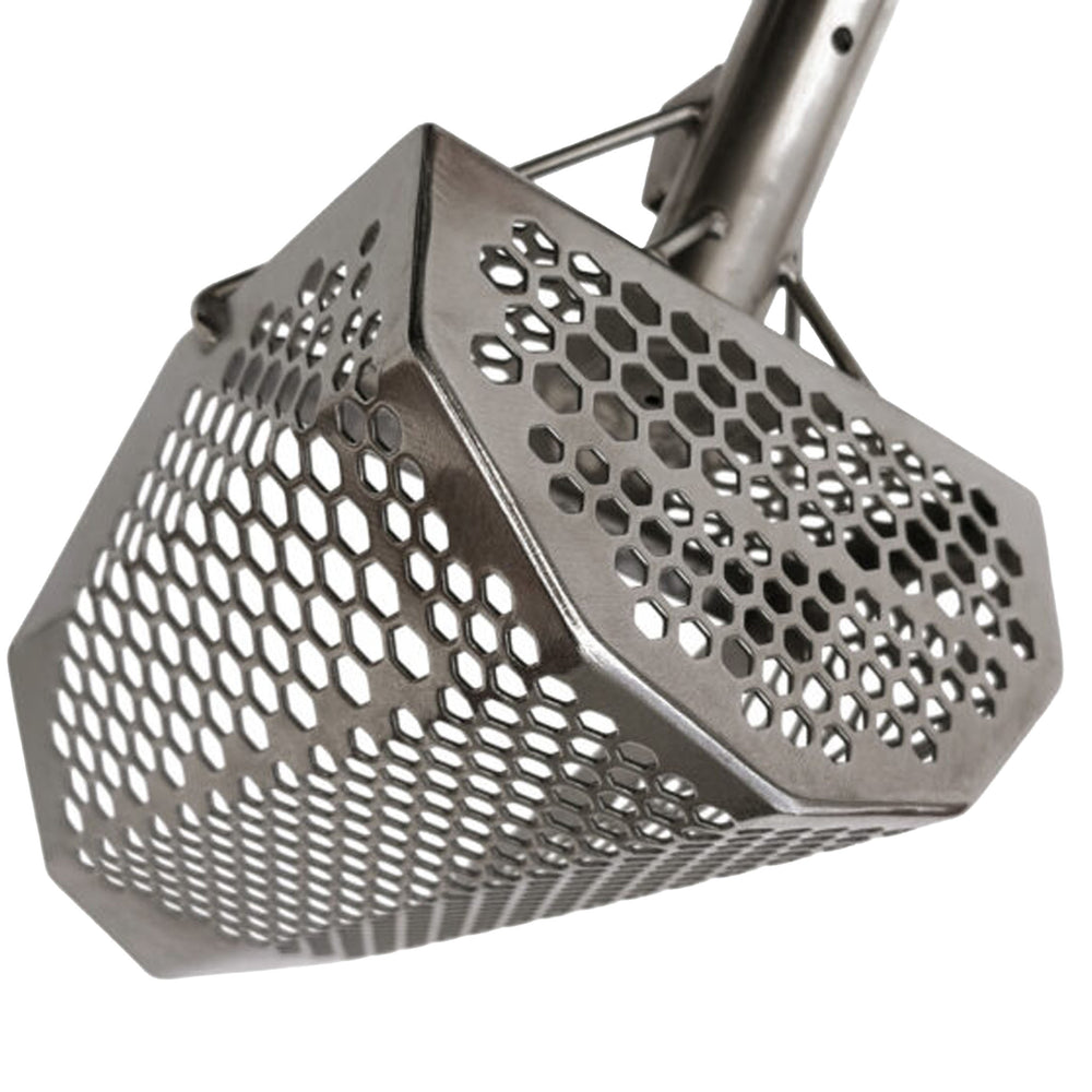 CooB 11.5" x 7" Stainless Steel Metal Detector Sand Scoop - Your Gateway to Uncover Hidden Treasures! Discover ancient coins and exquisite jewelry with ease. Designed with precision, this scoop features hexagon-shaped holes (10mm and 7mm) for efficient sifting, ensuring no valuable artifact escapes your grasp.