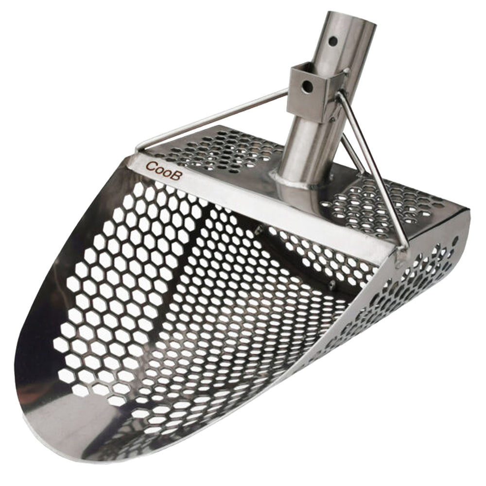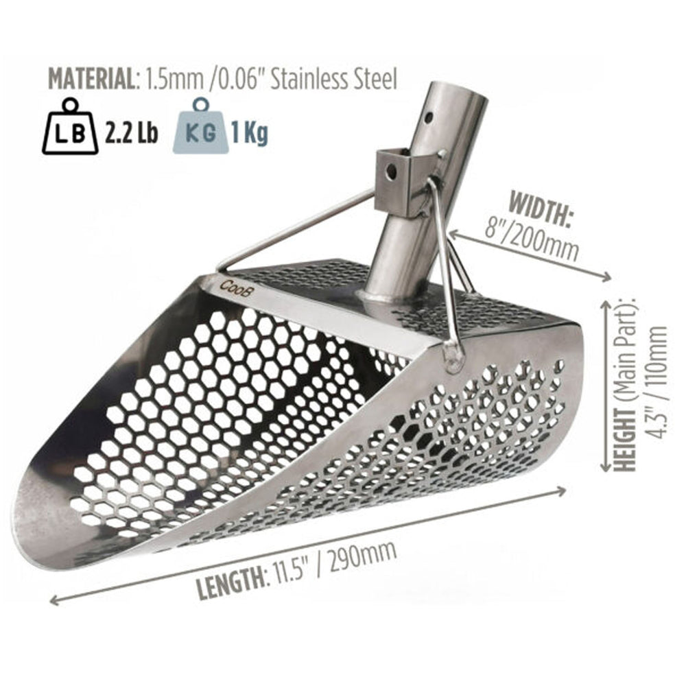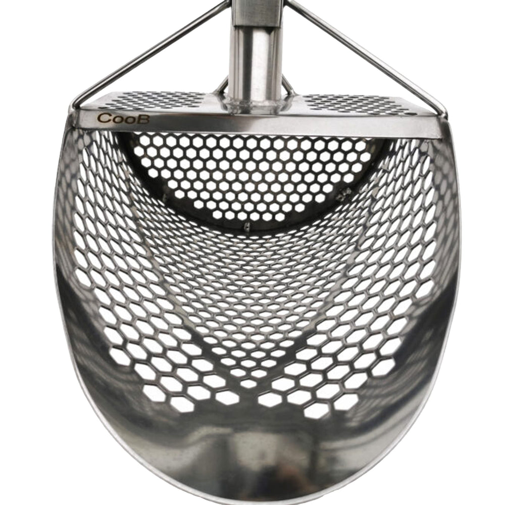 CooB 11.5" x 8" Stainless Steel Hand Sand Scoop - Your Gateway to Uncover Hidden Treasures! Discover ancient coins and exquisite jewelry with ease using our sand scoop. Designed with precision, this scoop features hexagon shaped holes (7mm) for efficient sifting, ensuring no valuable artifact escapes your grasp.
