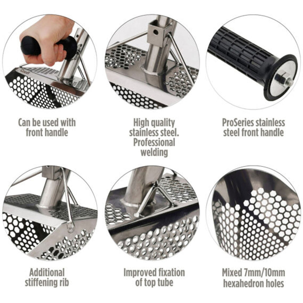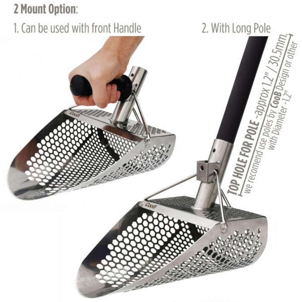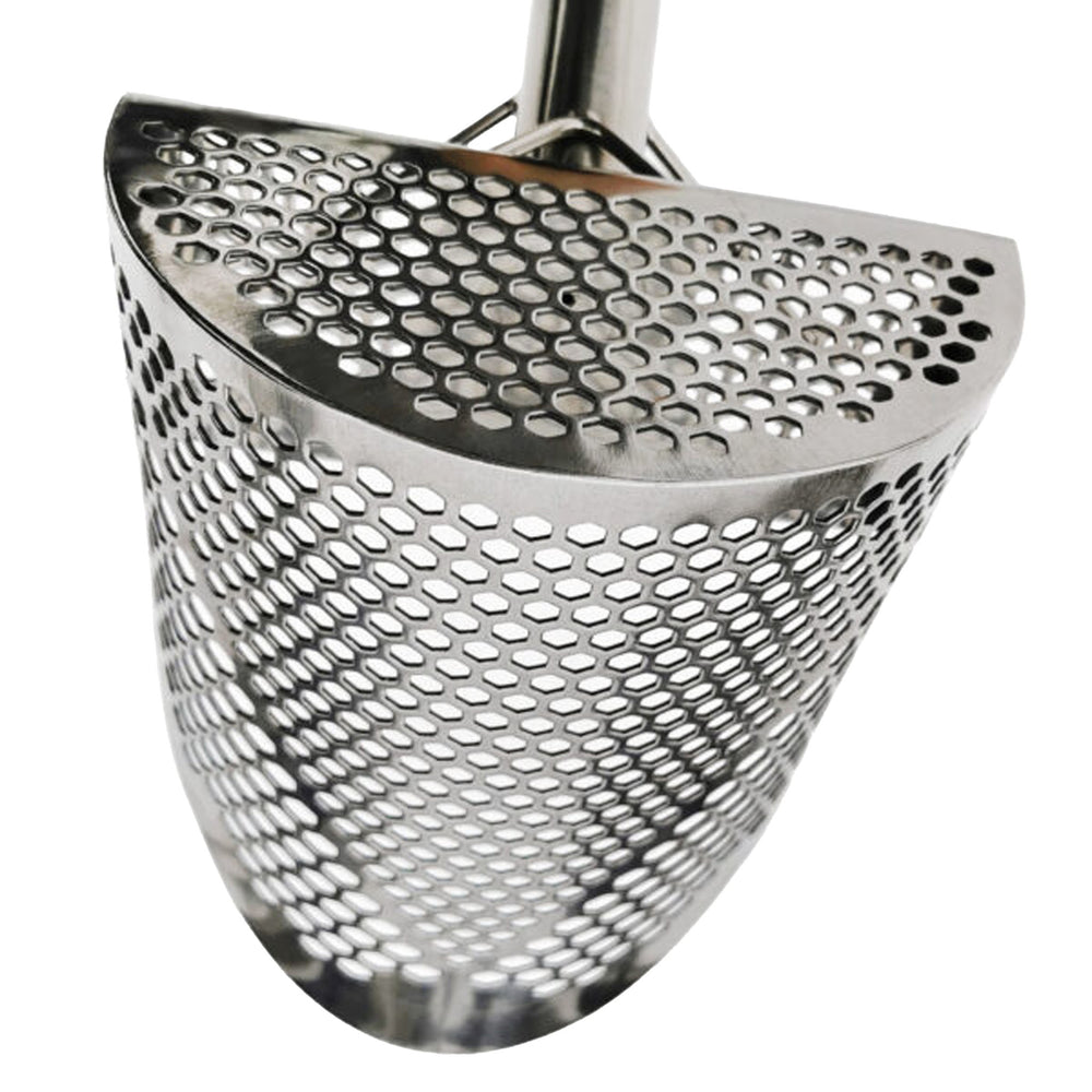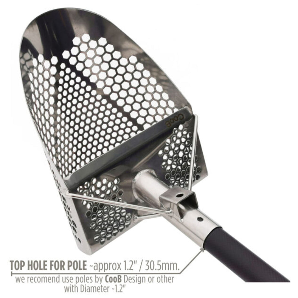 CooB 11.5" x 8" Stainless Steel Hand Sand Scoop - Your Gateway to Uncover Hidden Treasures! Discover ancient coins and exquisite jewelry with ease using our sand scoop. Designed with precision, this scoop features hexagon shaped holes (7mm) for efficient sifting, ensuring no valuable artifact escapes your grasp.