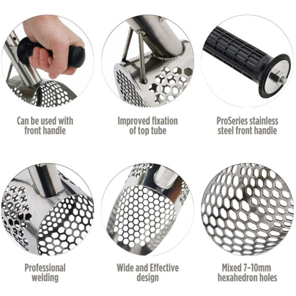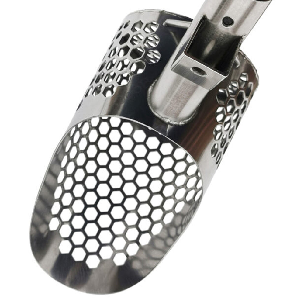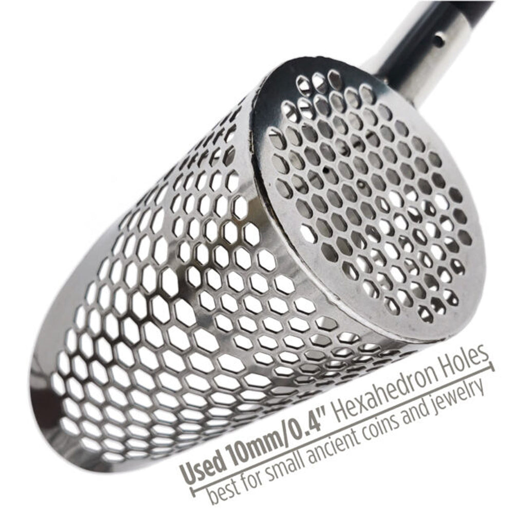 CooB 7.85″ x 4.75″ Stainless Steel Metal Detector Sand Scoop - Your Gateway to Uncover Hidden Treasures! Discover ancient coins and exquisite jewelry with ease. Designed with precision, this scoop features Round/Hexagon holes (7mm and 5mm) for efficient sifting, ensuring no valuable artifact escapes your grasp.