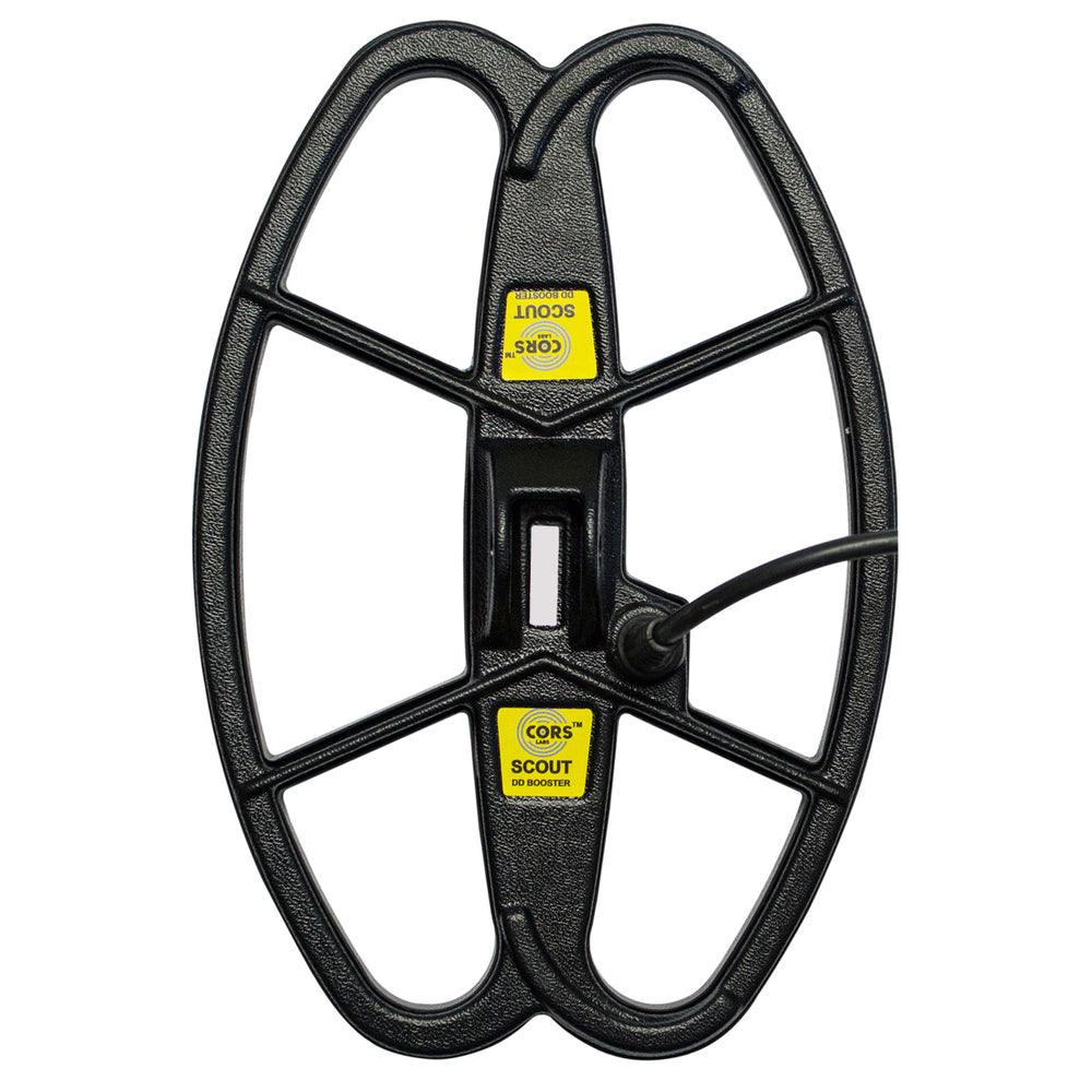 CORS Scout 12.5" x 8.5" DD Search Coil with Coil Cover, Nut & Bolt, two Rubber Rings, Velcro Strap, and a Two-Year Warranty.