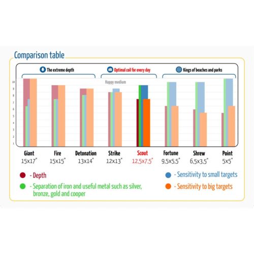 This coil is unusually light for its size, which makes it easy to search for a whole day. The coil is superior to a standard coil in depth by 5%-30% (depending on the model of the metal detector) and in ground coverage of between 25%-50% (depending on the model of the metal detector).