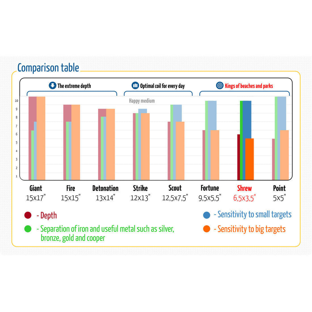 The CORS Shrew Search Coil is easy to use and is very good at pinpointing targets. The coil is fully submersible, the coil body is filled with high quality epoxy resin.