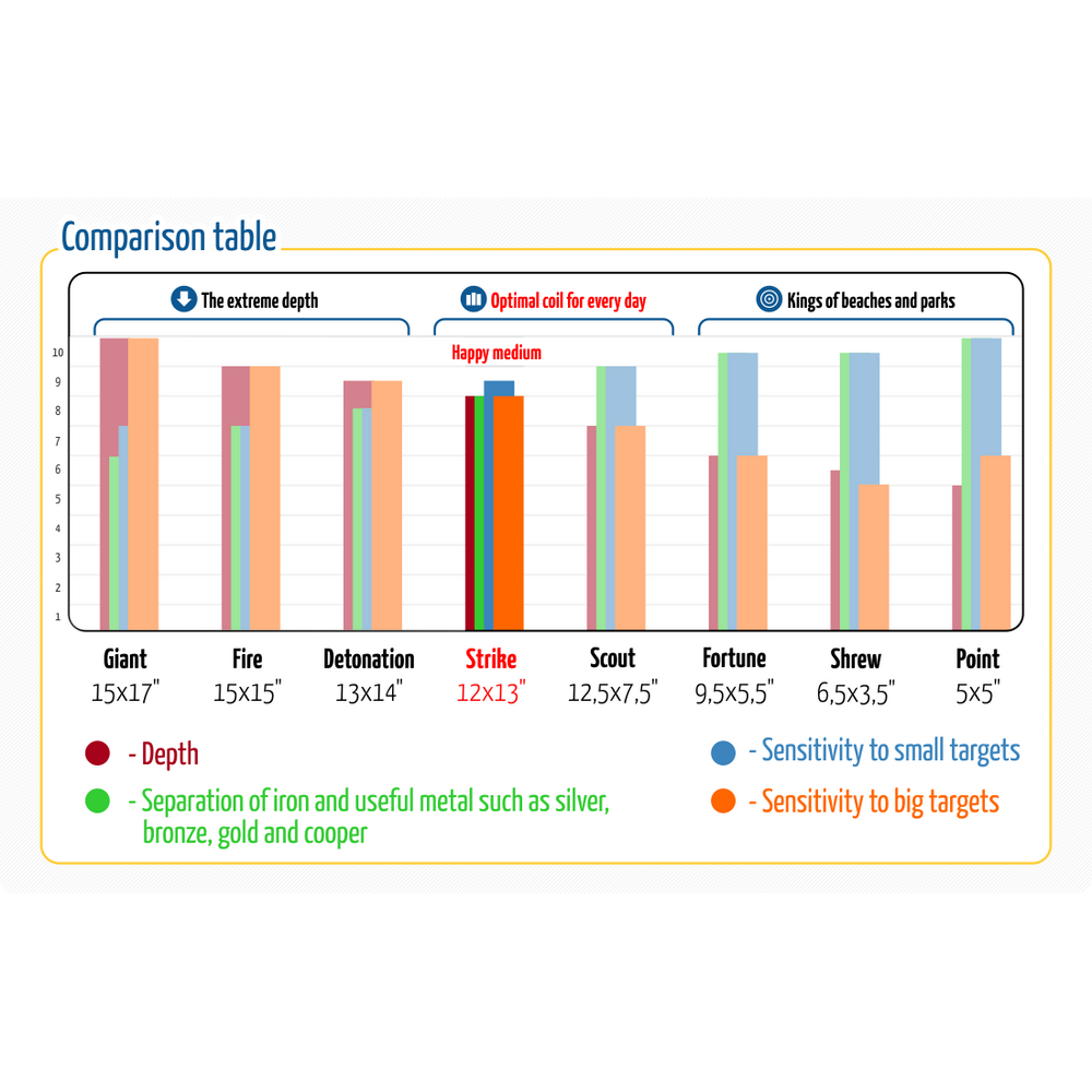 CORS Strike Search Coil is lightweight and completely Waterproof- and has excellent maneuverability. This Coil is especially suited to search land heavily littered with iron, such as cities, beaches and parks.