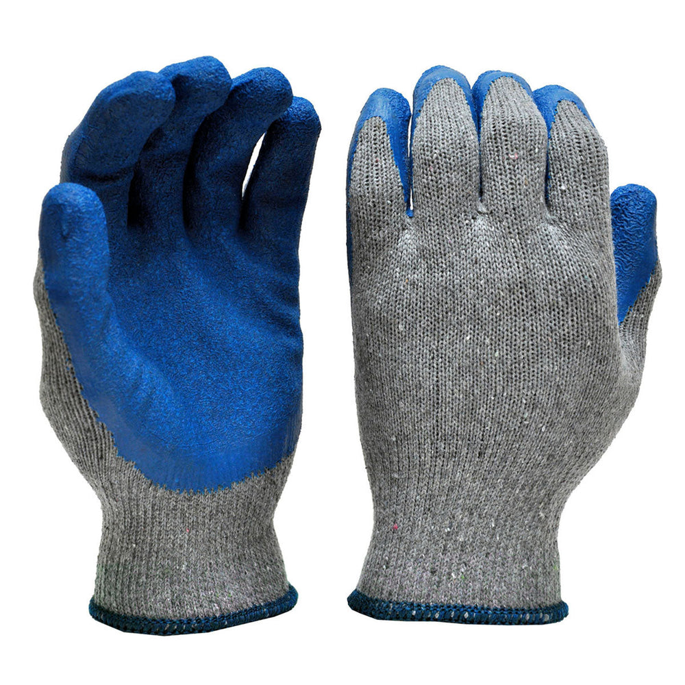 These knit palm latex coated work gloves are very popular and widely used. These gloves help protect the hands from sharp edges of metal, ceramics, glass and other materials. The rubber coated with blue latex provide firm sure grip, and don’t let what you’re working on slip out of your hands.