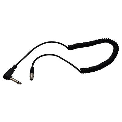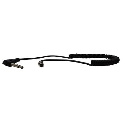This coiled cable features a 3 pin female push in connector on one and, and a reinforced molded right angle 1.4" (6.3mm) stereo connector on the other.