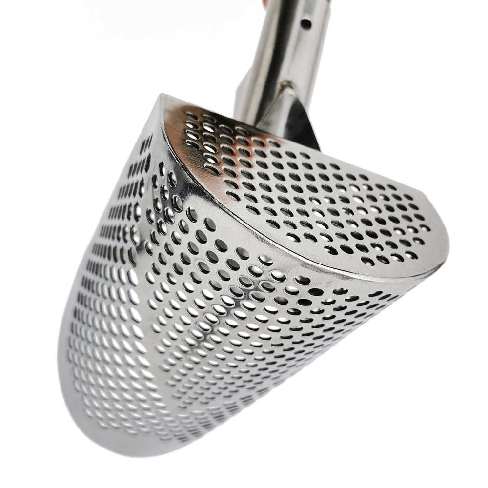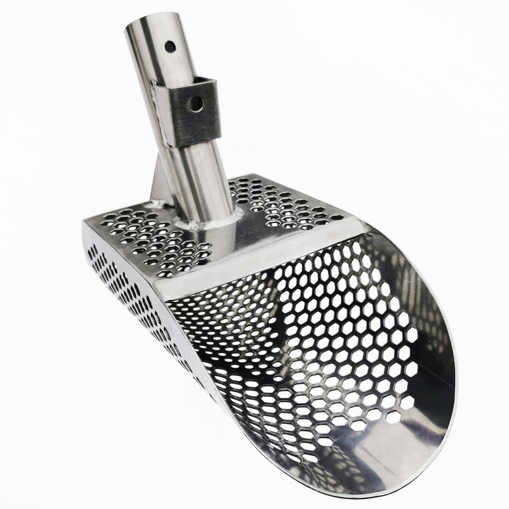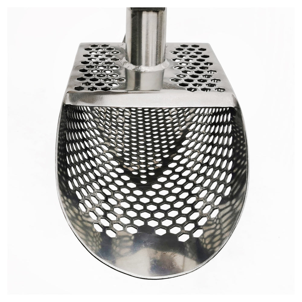 Dune Scoops 9.9" x 4.75" Stainless Steel Metal Detector Sand Scoop - Your Gateway to Uncover Hidden Treasures! Discover ancient coins and exquisite jewelry with ease. Designed with precision, this scoop features hexahedron holes (5-7mm) for efficient sifting, ensuring no valuable artifact escapes your grasp.