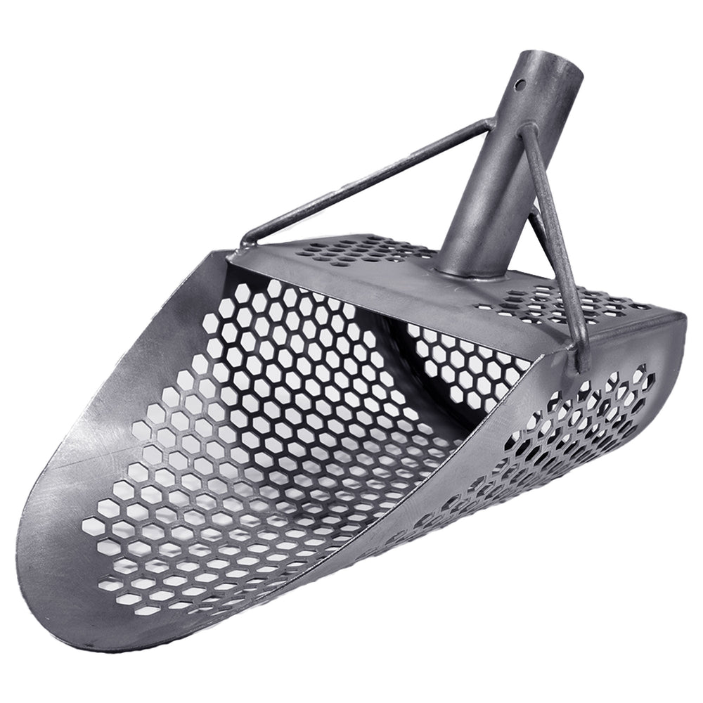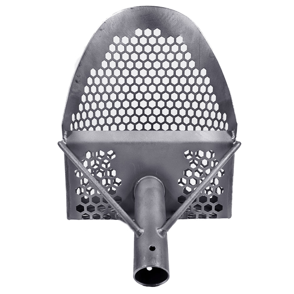 Made out of titanium, this scoop is designed to be light and strong. especially for an effective and simple search on the beach, underwater, and surf. The hexahedron holes of this scoop are used best to find small ancient coins and the finest jewelry. The holes were designed using a German Punching Machine Trumpf, Trumatic 500R-1300CNC, for a precise cutting to keep your findings within the scoop. There is an improved fixation on the top of the tube, so it will fit your rod and handle securely. Additional stiffening rib has been added to make the scoop more durable and rigid. The back wall is made stingy angle that provides convenience to stop foot and reduces the load on the hands.