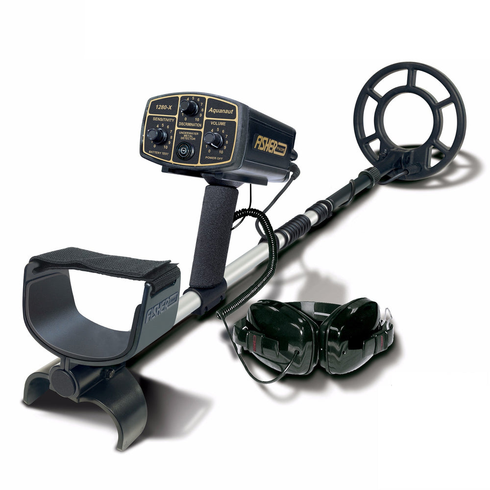 Open Box - Fisher 1280X Metal Detector with 8" Concentric Waterproof Search Coil, Submersible Headphones, and a Two-Year Warranty.