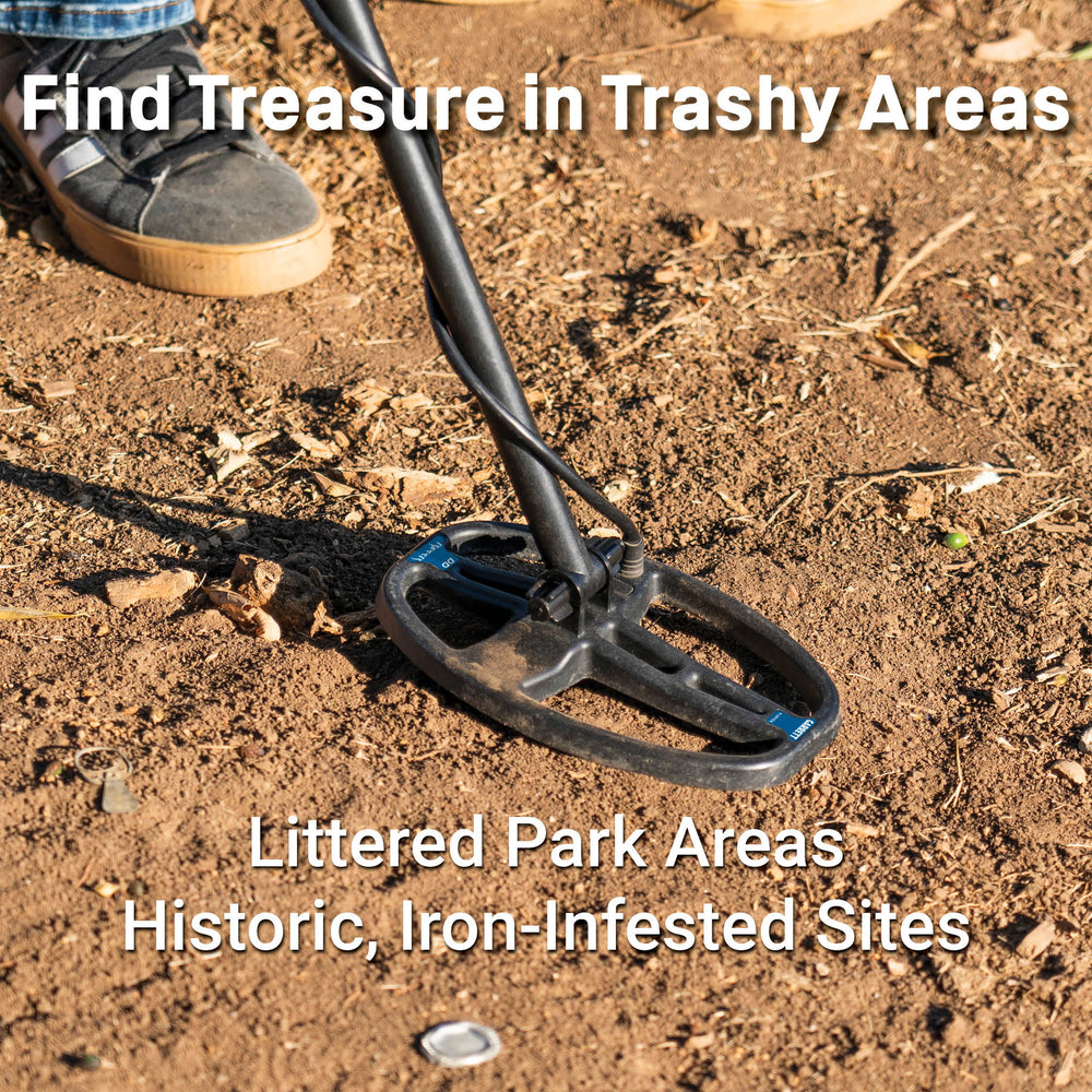 The 5" x 8" DD Vortex Ripper coil is the perfect size for working in tight spaces, around rocks, and in heavily trash-laden or iron-infested areas. Its compact footprint allows you to get closer to obstacles while maintaining excellent maneuverability and precision.