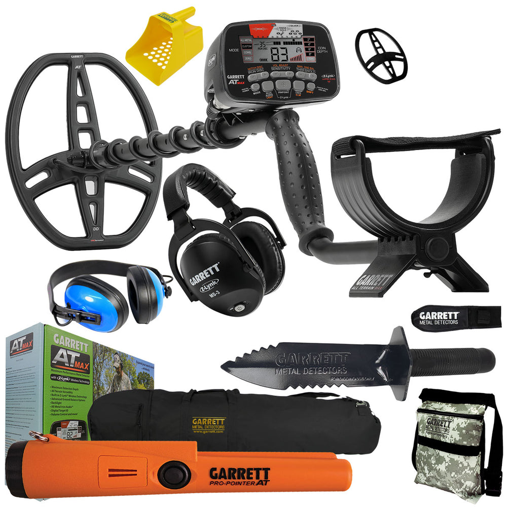 Garrett AT Max All Terrain Metal Detector Bundle, with Built-in Z-Lynk Technology & MS-3 Headphones, Submersible Waterproof Headphones for AT Gold, AT Pro, Infinum LS, ATX 2202100, Diggers tool, Pouch, Plastic Sand Scoop, Carry Bag, and more!