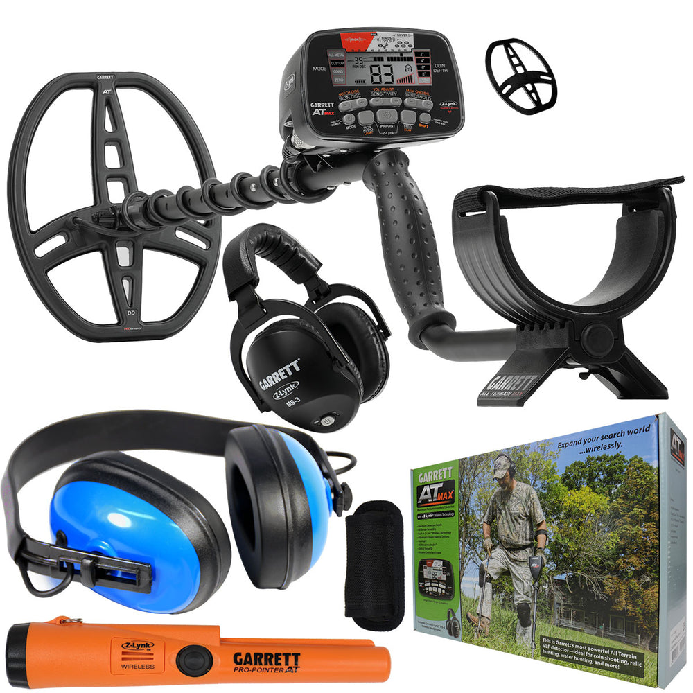 Garrett AT Max All Terrain Metal Detector Bundle, with Built-in Z-Lynk Technology & MS-3 Headphones, Submersible Headphones for AT Gold, AT Pro, Infinum LS, ATX 2202100 and more!