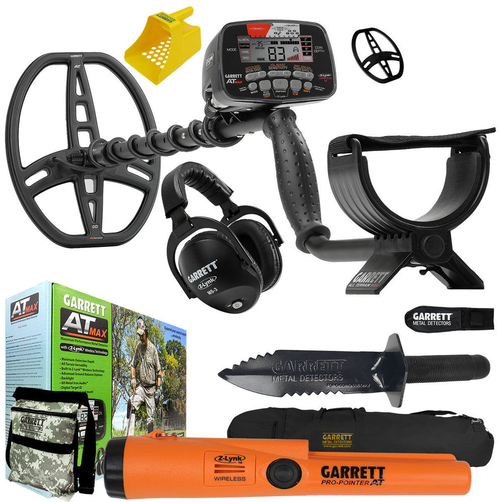Garrett AT Max All Terrain Metal Detector Bundle, with Built-in Z-Lynk Technology & MS-3 Headphones, Diggers tool, Pouch, Plastic Sand Scoop, Carry Bag, and more!