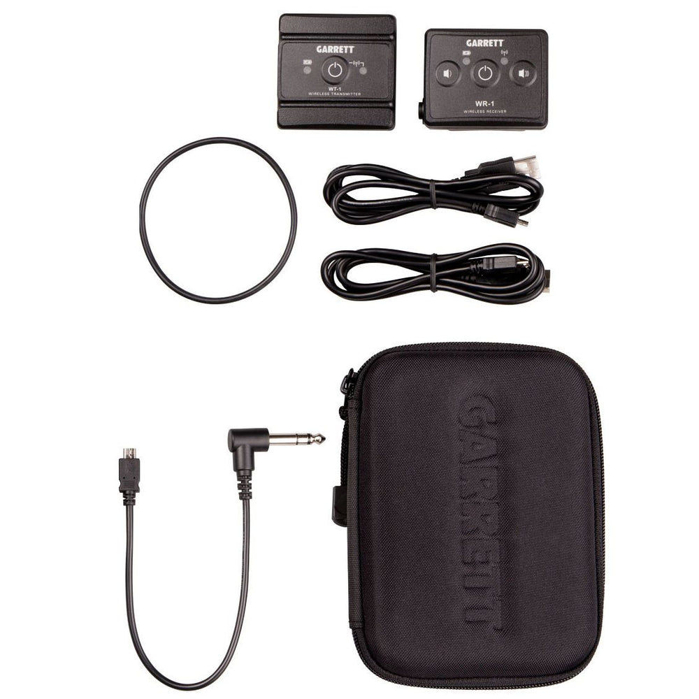 Garrett Z-Lynk Wireless System. Transmitter and receiver with 1/4" headphone jack connector. Use your favorite land headphone with 1/4" plug and go wireless! All the benefits of using headphones, without being tied to your metal detector. Nearly universal; designed to work with most metal detector brands and most wired headphones. Note: Z-Lynk Wireless System requires use of headphones with a 1/4" headphone jack (not included).