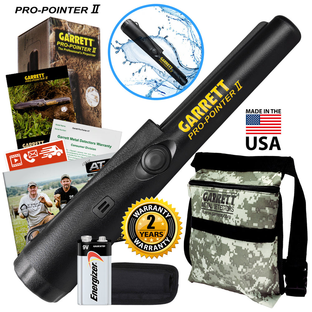 The water resistant Garrett Pro-Pointer II pinpointer assists in pinpointing those hard-to-find targets with a 360° side scan detection area. With One-Touch ease of use, you will never want to be in the field without one.