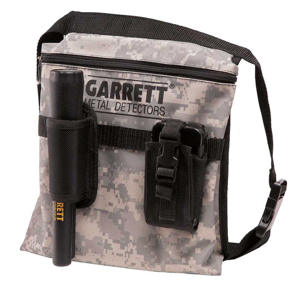 Complete with Garrett Camo Finds Bag and a Woven Belt Holster. Rugged and handy for all of your metal detecting outings.