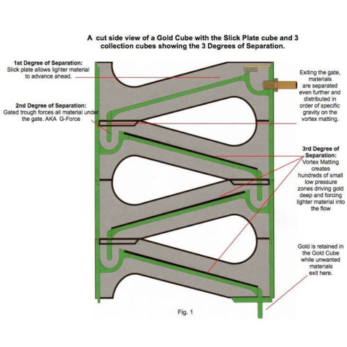 Active Vortex Zones gravitate the heavy gold downward thus forcing out lighter materials, even black sand! Each modular tray contains thousands of these "tornado zones" that continually purge.. you will always keep the gold while removing almost everything else automatically! Go ahead and feed the Gold Cube, it's a very hungry machine.