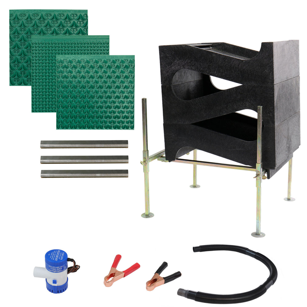 Gold Cube 4 Stack Deluxe Complete Gold Prospecting Kit with 1 Slick Plate, 2 Separator Trays, Stand, Pump, Hose, Dream Mat Set, and Hose Adapters.