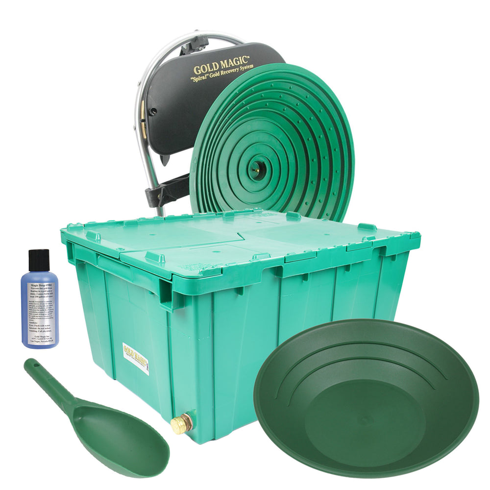 The Gold Magic Spiral Gold Recovery System will allow you to work more material faster and recover more gold than ever before! This machine will work dry to highly concentrate material, and it will work wet in a tub to separate black sand and gold. And it can work right down in a stream to process material so you take home clean gold.