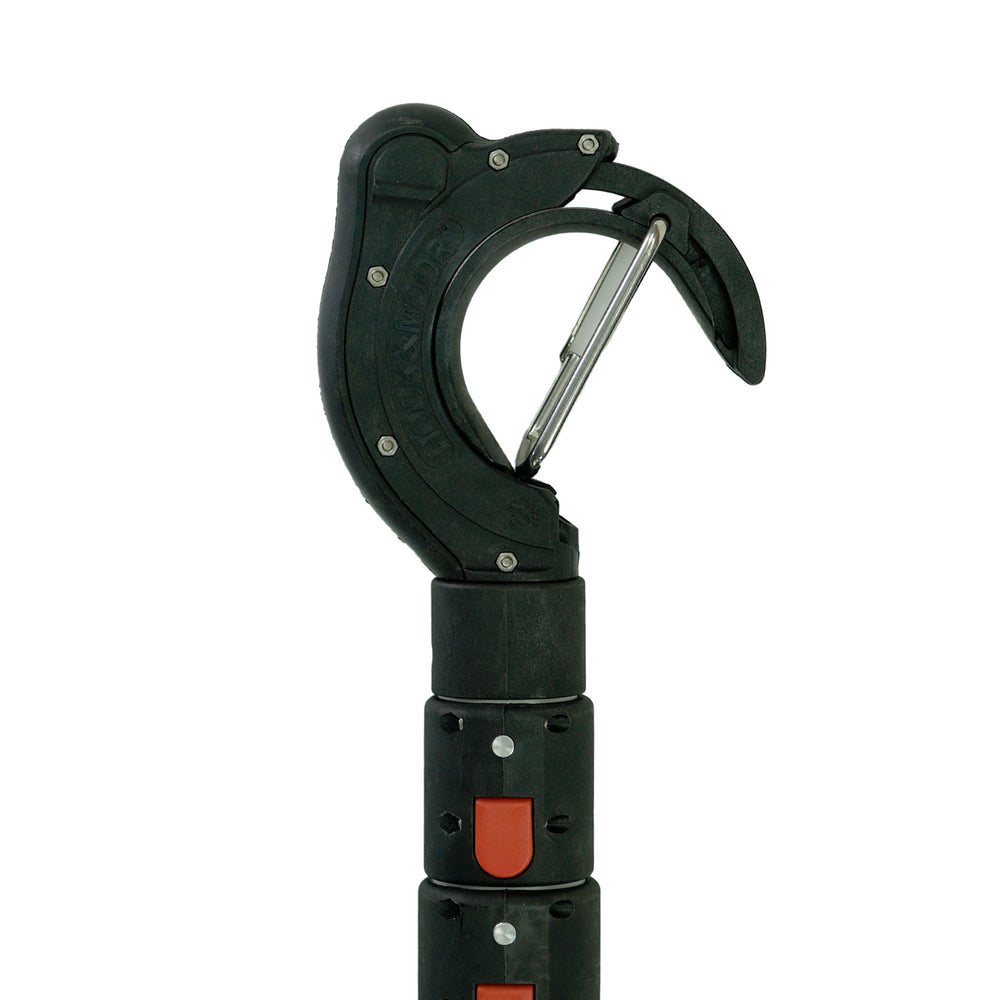 Discover the Hook & Moor, equipped with a carbon/glass fiber-reinforced PA head that redefines mooring technology. Unlike traditional hooks, the 2.36"(60 mm) head on the Hook & Moor ensures superior functionality when docking or anchoring your boat. Its design eliminates the risk of going overboard and allows you to moor without the need for outside assistance. Simply push or pull to guide your mooring rope through the ring and back onto the boat in one smooth motion. No need for a messenger line—just use your own mooring line and stay safely onboard. Plus, the Hook & Moor doubles as a regular boat hook when the head is locked open, and if dropped in water, it floats for easy retrieval. Optimize your mooring experience with the Hook & Moor, the essential tool for every boater.