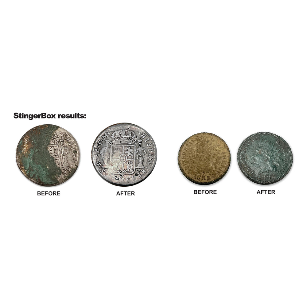 Whether you’re cleaning a dug coin, reviving old jewelry, or restoring a relic from centuries past, the Stinger Box makes professional-grade conservation possible at home.