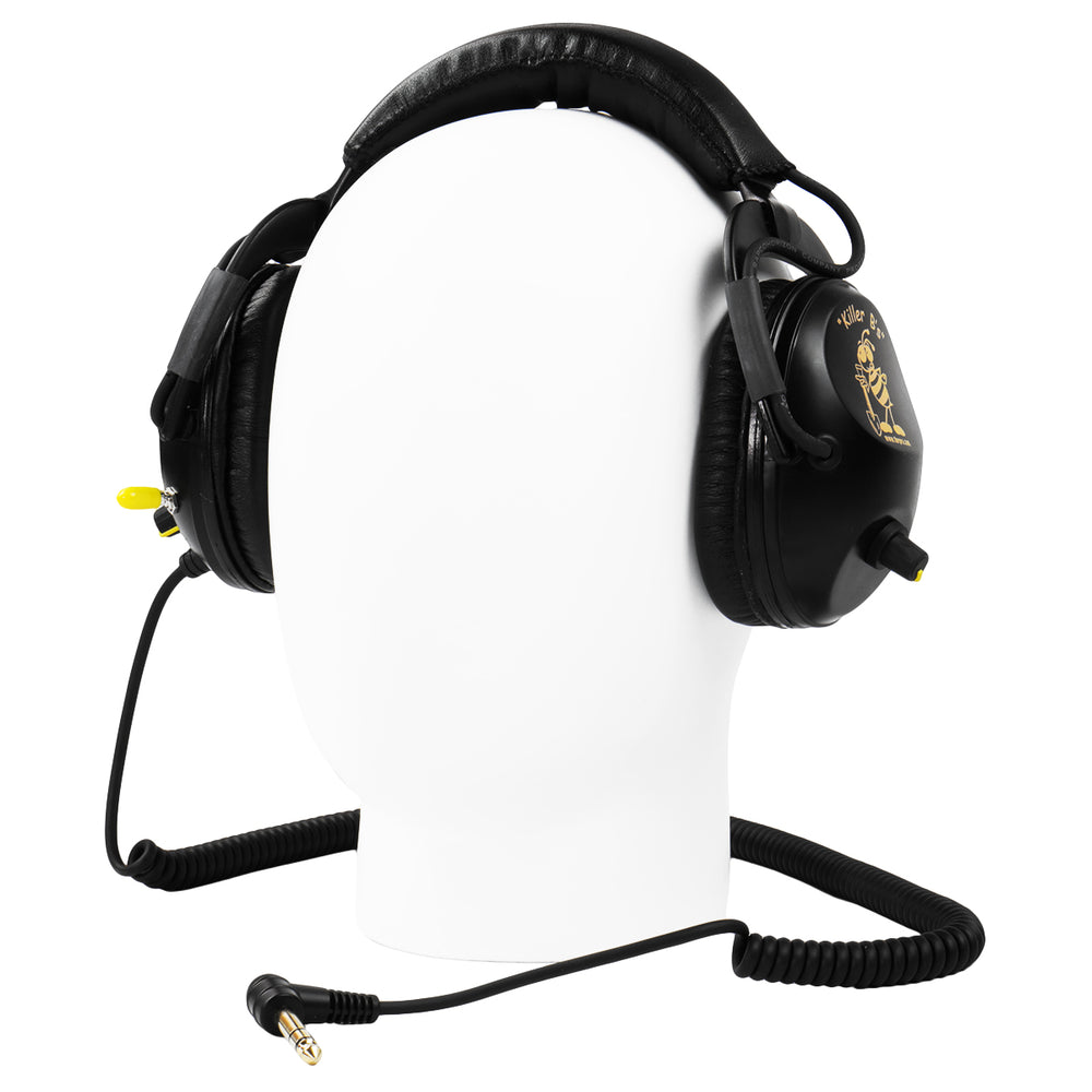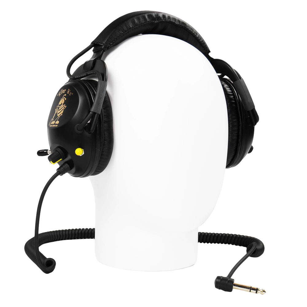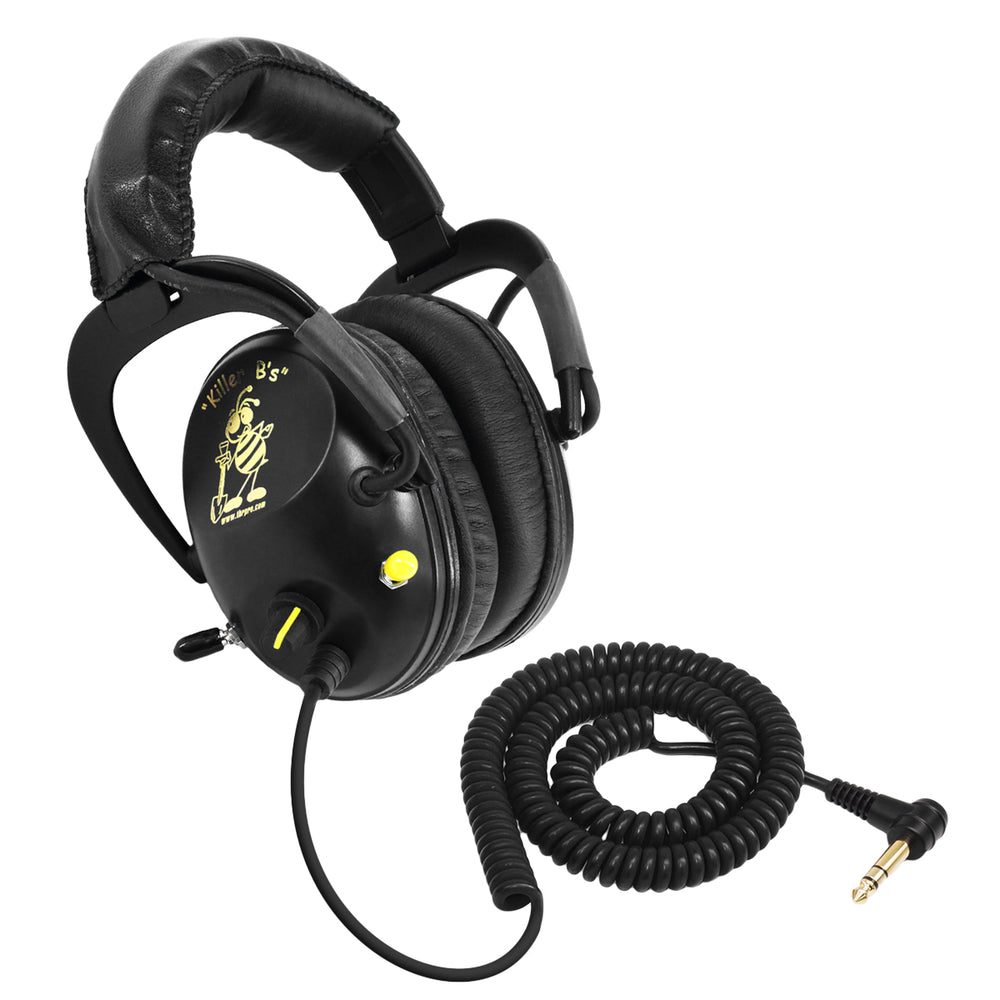The Wasp has every bell and whistle offered by Killer B’s. It has dual 41 position volume controls, high output 150 ohms speaker elements, external strain relief, larger diameter, soft to the touch control knobs, locking color coded toggles, a switch-able limiter circuit, lightweight and comfortable cups, a mode switch making it compatible with most detectors and a high quality coiled cord with a ¼” angled jack.