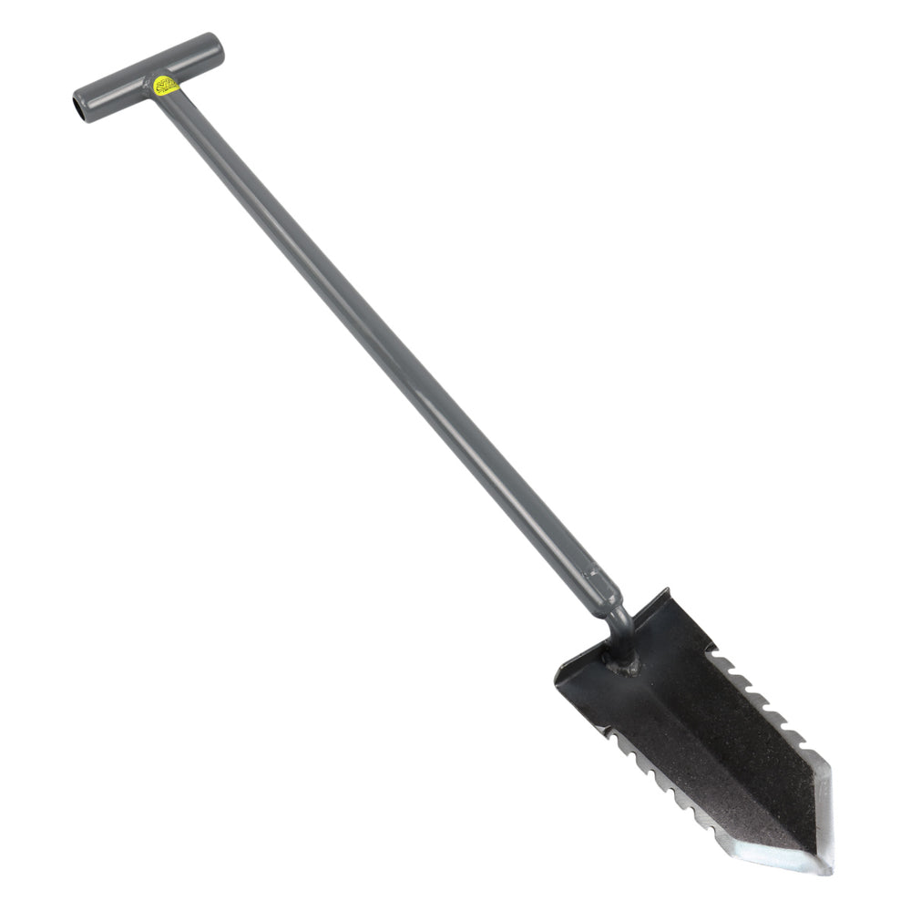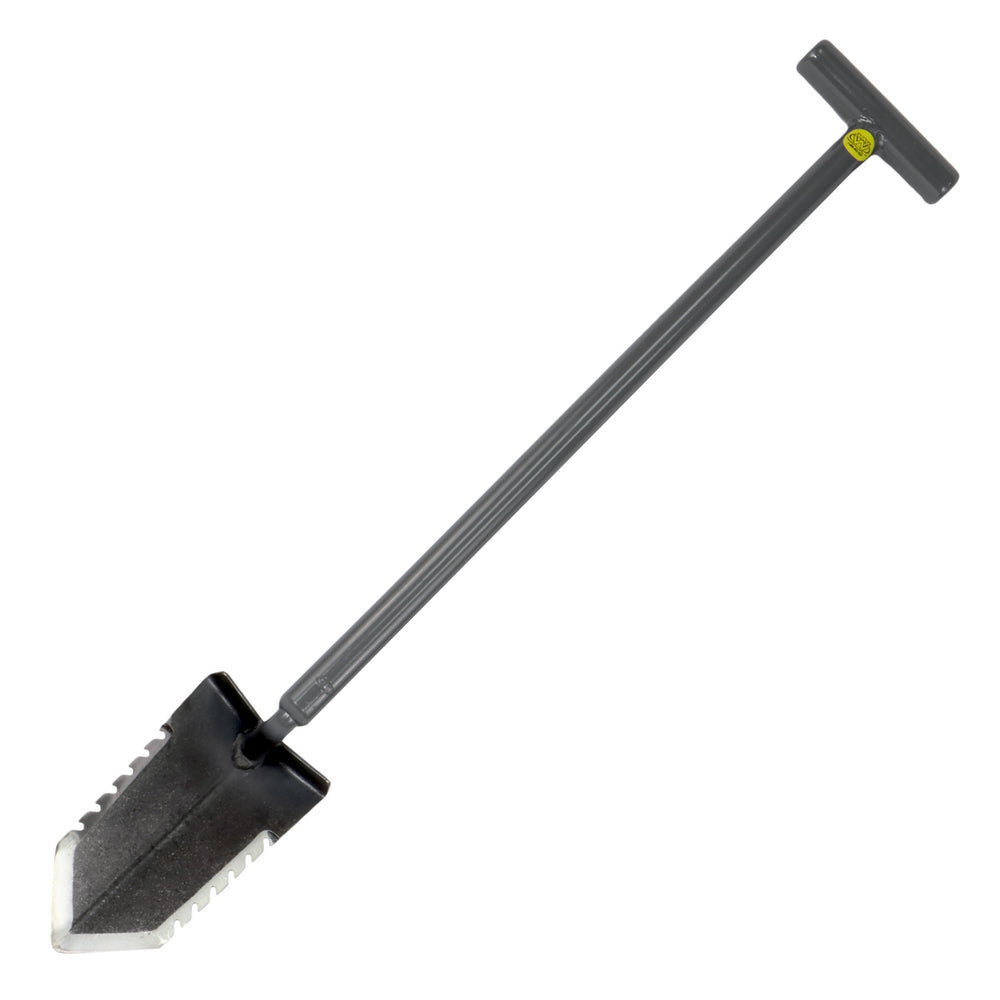 Lesche T- Handle 31" Heavy Duty Shovel with Double Serrated Blade and a Five-Year Warranty.