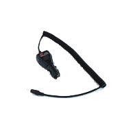 The car charger plugs into a 12 Volt DC automotive cigarette lighter socket for convenient, mobile charging when away from mains power.