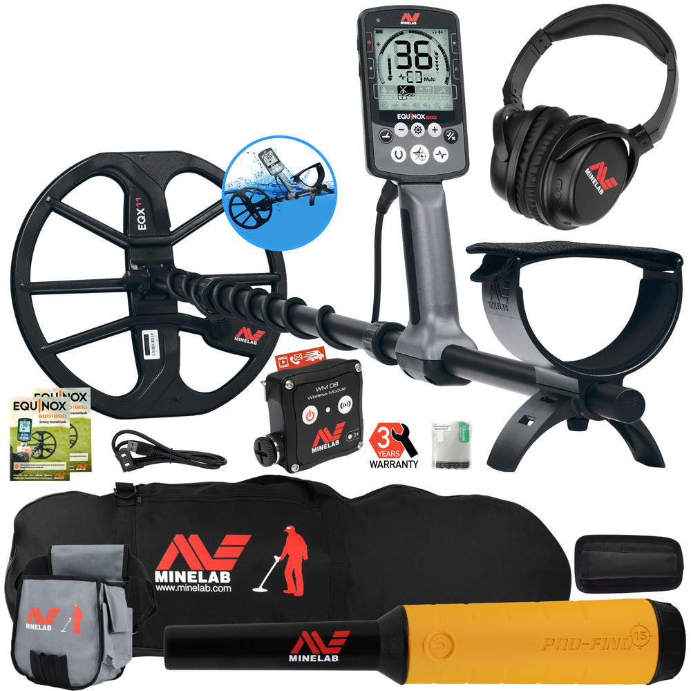 Minelab EQUINOX 800 Multi-IQ Metal Detector with Minelab Pro Find 20 Pinpointer, Minelab Black Padded Metal Detector Carry Bag, Minelab Tough Canvas Tool & Treasure Bag with Pouch & Zipper Pocket