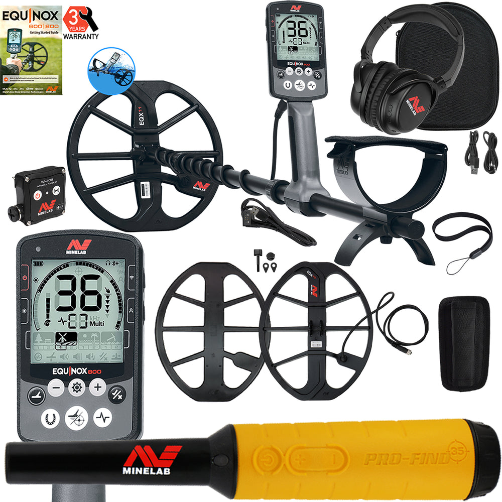 Minelab EQUINOX 800 Multi-IQ Metal Detector with 15" x 12" Coil & Minelab Pro Find 35 Pinpointer