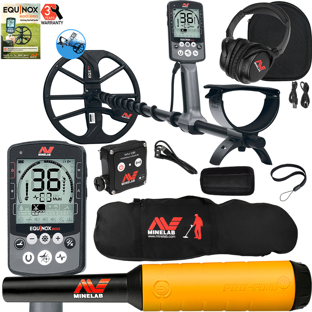Minelab EQUINOX 800 Multi-IQ Metal Detector with Minelab Pro Find 20 Pinpointer & Black Padded Carry Bag