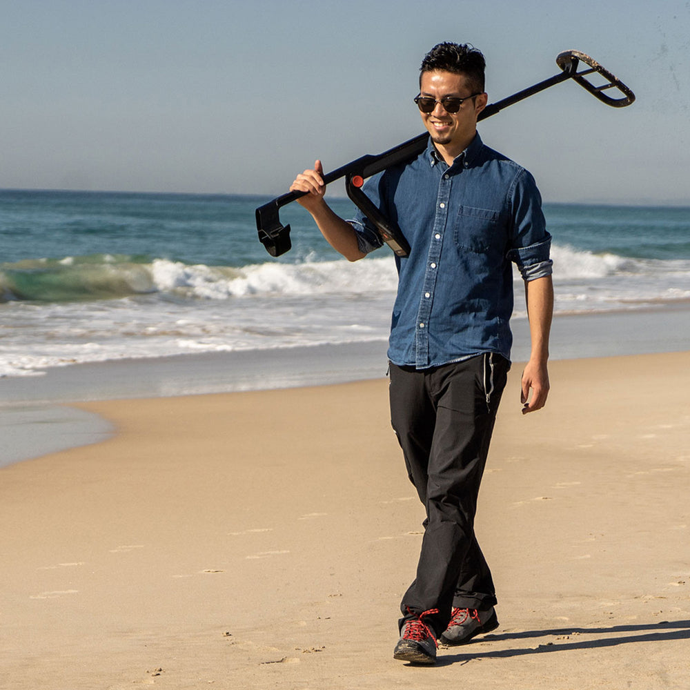 The Minelab GO-FIND 11 metal detector is lightweight and collapsible. The search coil fully waterproof, so you can find treasure on land and in water.