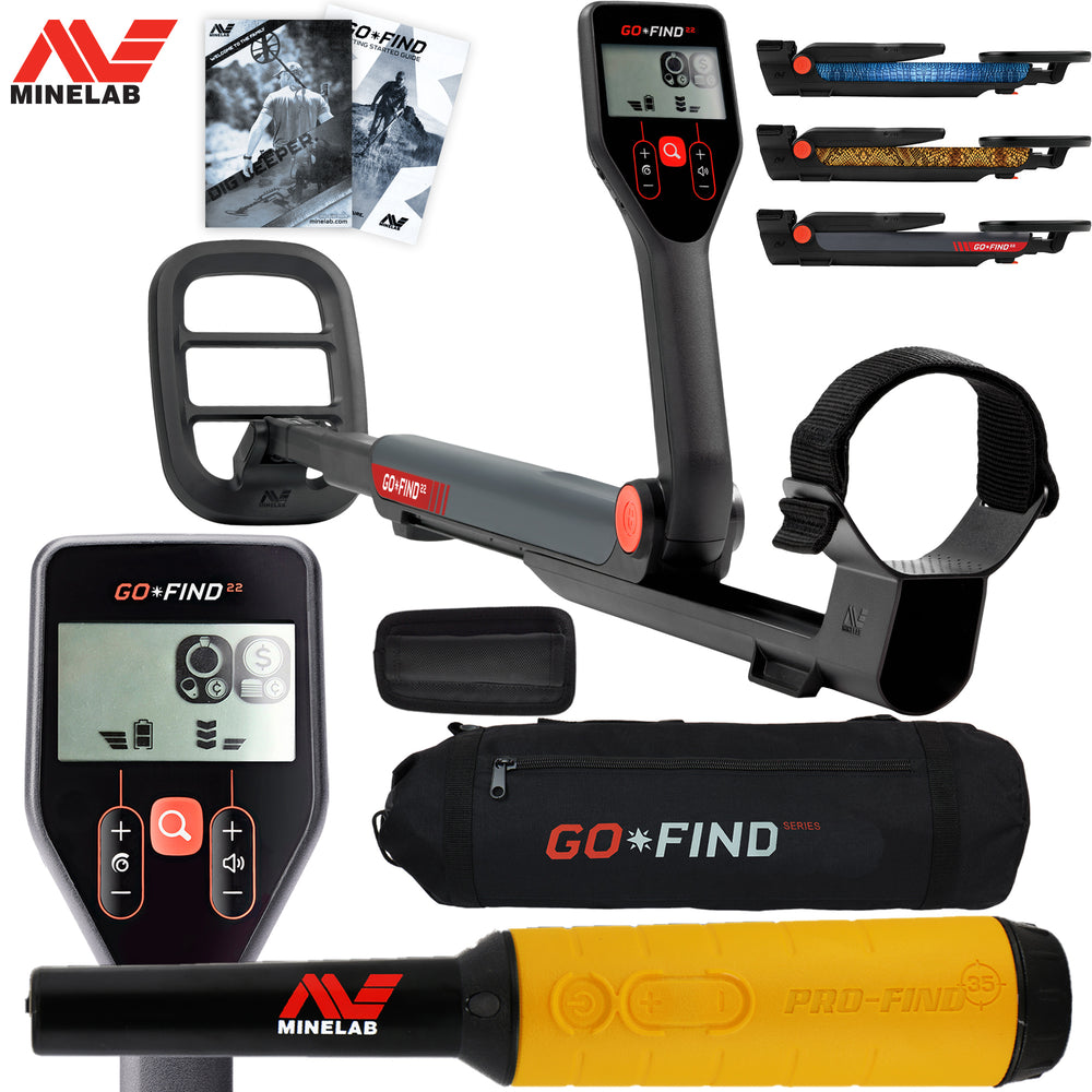 Minelab GO-FIND 22 Metal Detector with PRO FIND 35 and Black Transport Carry Bag.