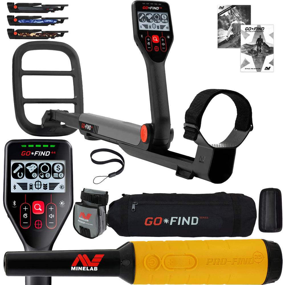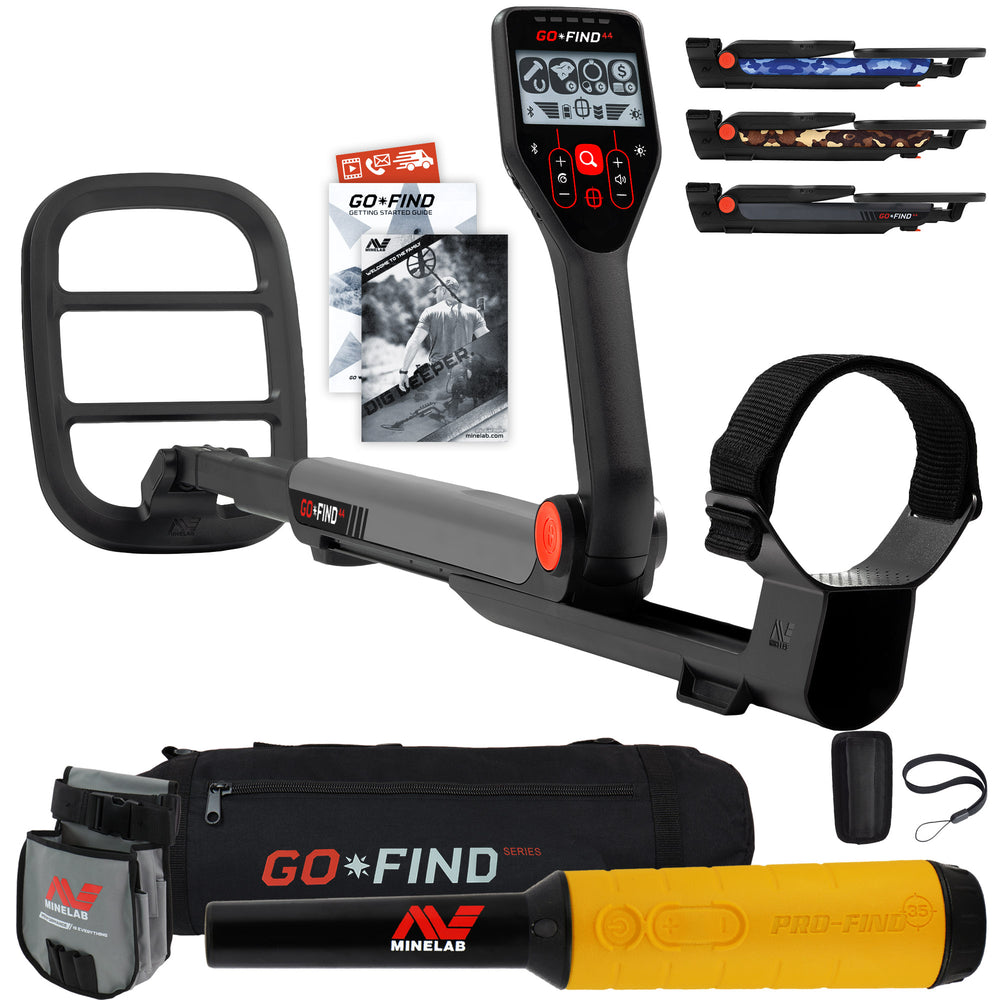 Minelab GO-FIND 44 Metal Detector with PRO FIND 35, Black Carry Bag, Finds Pouch.