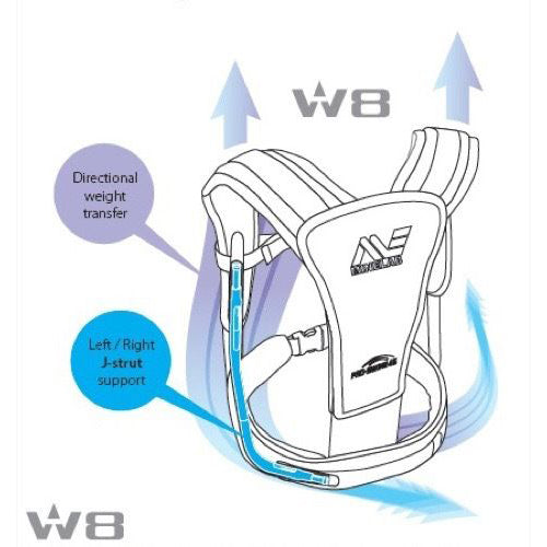 The PRO-SWING 45 harness has been designed for ultimate convenience and functionality and incorporates Minelab's innovative weight (W8) distribution system. W8 technology evenly distributes the detector’s weight, so that even after many hours of detecting you are unable to feel that any specific part of your body is carrying the detector’s weight.