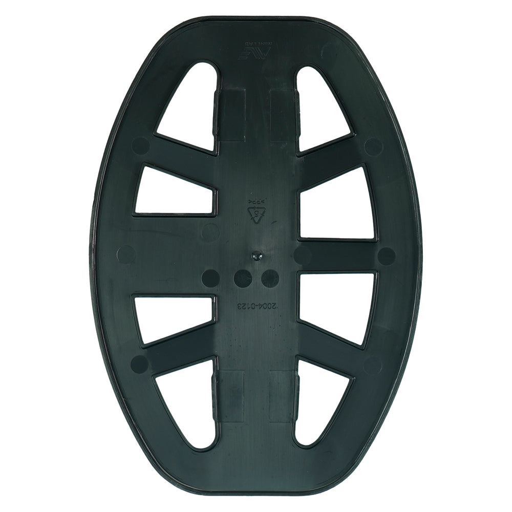 The waterproof 8" x 5" inch elliptical Double-D coil provides maximum depth for specialized treasure hunting. A protective skidplate is included.