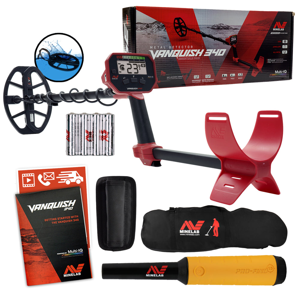 The VANQUISH series offers three metal detectors and a special Pro Pack, all of which include three turn-on and go detecting modes; COIN, JEWELRY, and RELIC. The VANQUISH 340 is a great starter coin and treasure detector that includes a 10” coil.