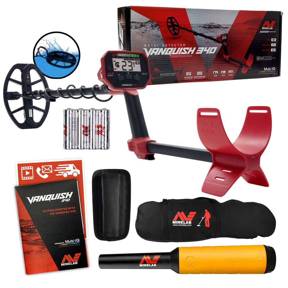 The VANQUISH series offers three metal detectors and a special Pro Pack, all of which include three turn-on and go detecting modes; COIN, JEWELRY, and RELIC. The VANQUISH 340 is a great starter coin and treasure detector that includes a 10” coil.