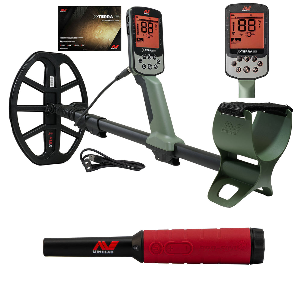 Stand out from the crowd and step up your detecting game with the all-new X-TERRA PRO treasure detector by Minelab. Out of the box, simply set your detector to match your terrain with Park, Field, and Beach Search Modes and leave all the hard work up to the detector to start unearthing the treasure you seek. As your skills improve, X-TERRA PRO offers room to grow with PRO-SWITCH (Switchable Frequency Technology), so you can set it to 5, 8, 10, or 15 kHz at the press of a button and take control of any environment or situation that comes your way. Fully IP68 waterproof to 5 m (16 ft) and loaded with features like 5 audio modes, a control pod flashlight, and handgrip vibration you’ll be detecting like a pro from the moment you start swinging.