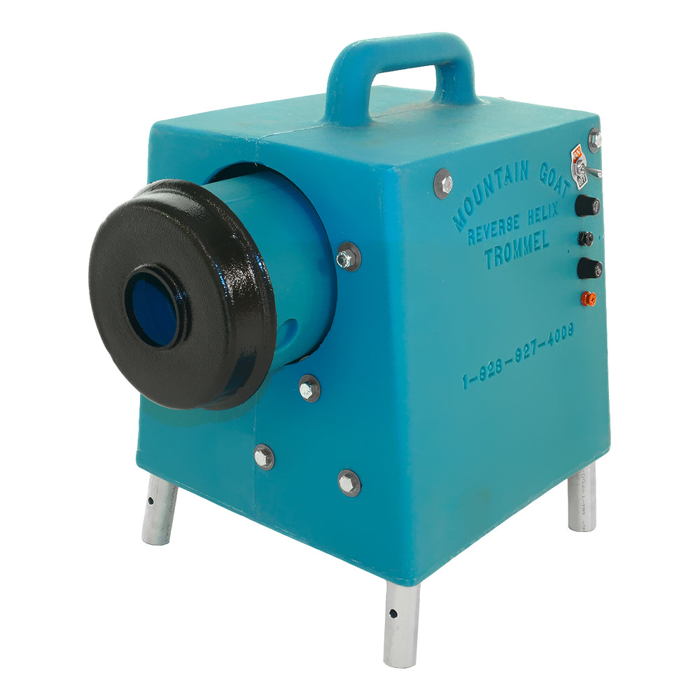The Mountain Goat Trommel is a small version of the reverse helix trommels used by major placer mining companies. Do not confuse it with the gravel pit trommels which are screen type classifiers, not archimedes mining trommels. It can easily be carried up a mountain by one person.