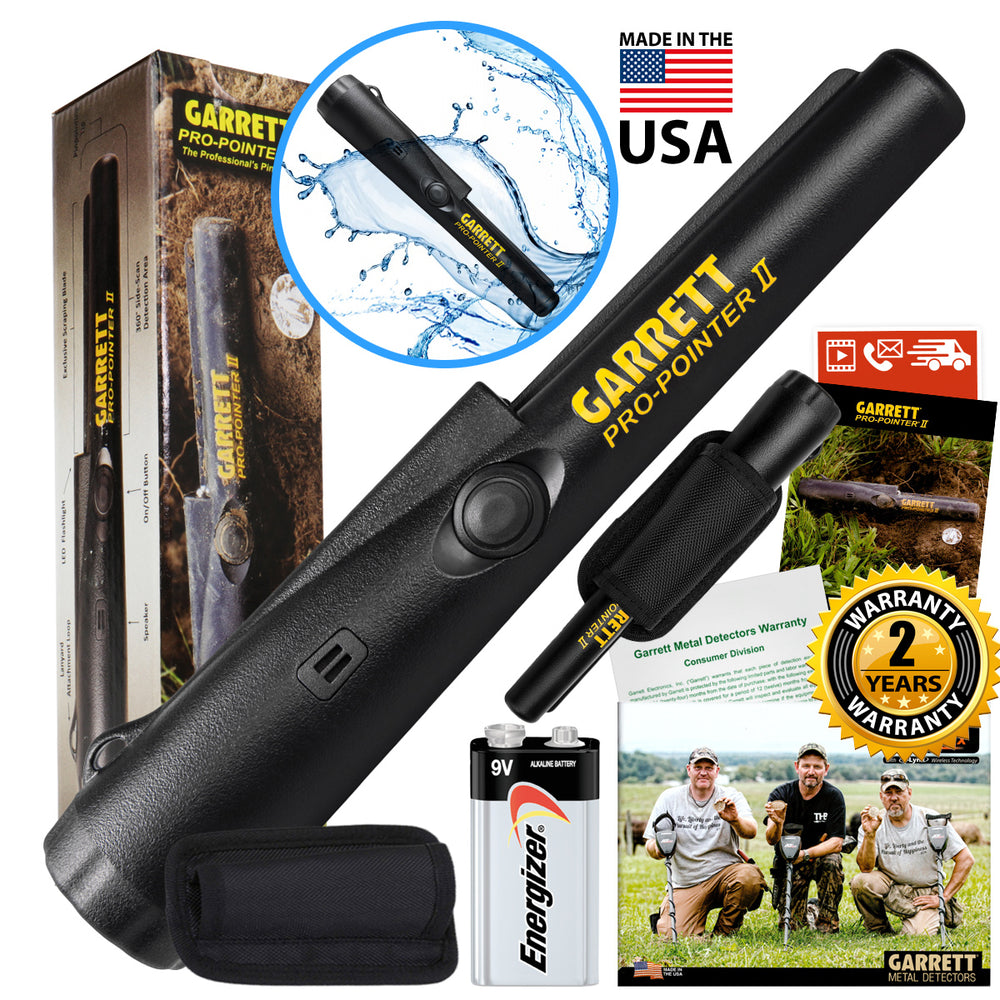 Garrett Pro-Pointer II Pinpointer with Woven Belt Holster, 9 volt Battery and a Two-Year Warranty.