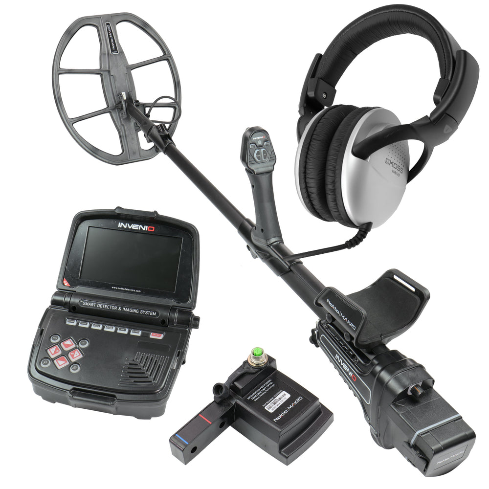 Open Box - Nokta Invenio Standard Pack Smart Metal Detector and 3D Imaging System with System Box, Shaft & Handle, IPTU Sensor, Waterproof DD Search Coil 40x35 cm (INV40) & Cover, Waterproof DD Search Coil 28x18 cm (INV28) & Cover, System Box Carrying Case, Carrying Belt, KOSS Headphones (6.3 mm jack), AC Charger, Car Charger, USB Cable, Protective Covers, IPTU Sensor Carrying Bag, Coil Mounting Hardware, Screen Sunshade, and Waterproof (IP67) Hard Transport Case.