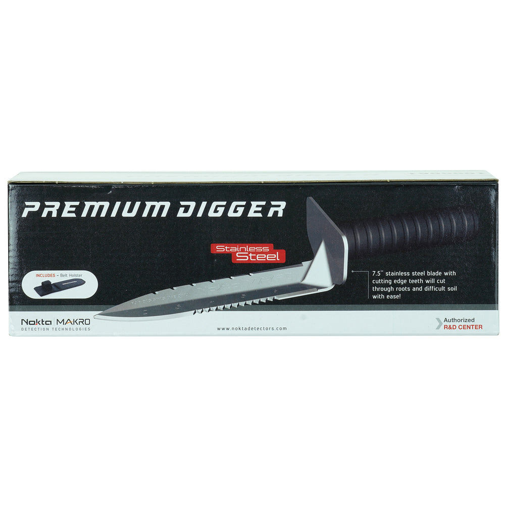 Take on the toughest digging jobs with this heavy-duty 7.5-inch stainless steel digging knife. The serrated cutting edge teeth easily cut through roots, packed clay, and rocky soil—perfect for metal detecting, gardening, landscaping, and outdoor treasure hunting. Crafted from rust-resistant stainless steel, it’s built to last. Includes a durable belt holster for safe storage and quick access in the field.