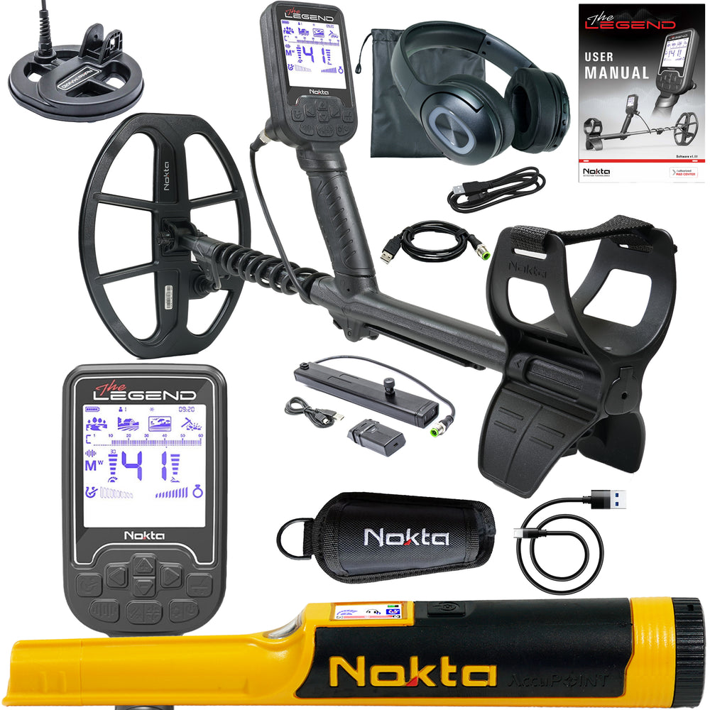 Open Box - Nokta The Legend SMF Metal Detector Pro Pack w/ Wireless Headphones, LG30 12" x 9" coil and updated with a fully carbon fiber shaft and a new sleek armrest.