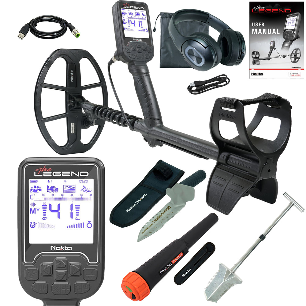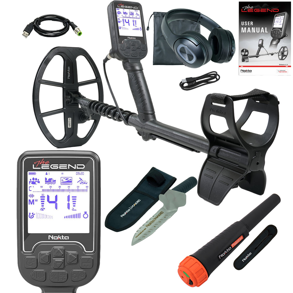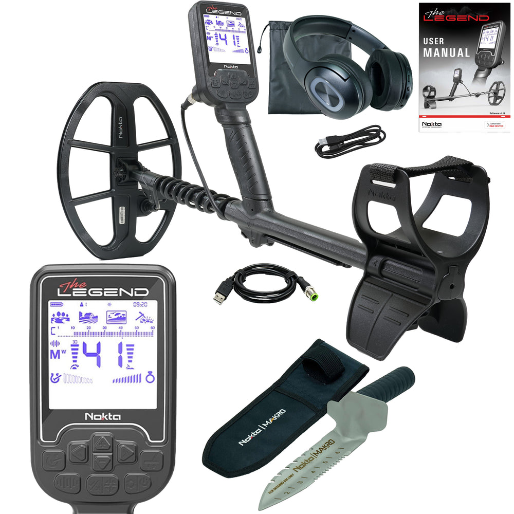 Nokta The Legend SMF Metal Detector w/ Wireless Headphones and LG30 12" x 9" Coil, updated with a fully carbon fiber shaft and a new sleek armrest.
