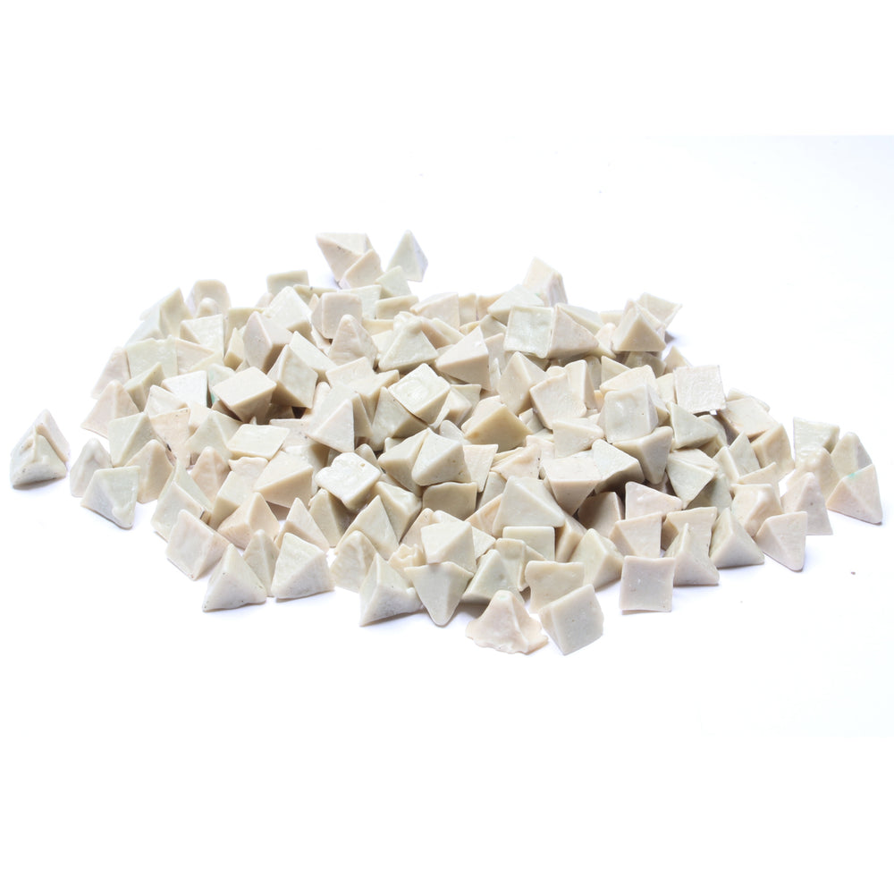 Raytech Very Fine Cut Pyramid Tumbling Media is designed for the final stages of vibratory finishing and polishing, providing exceptional smoothness and surface refinement.