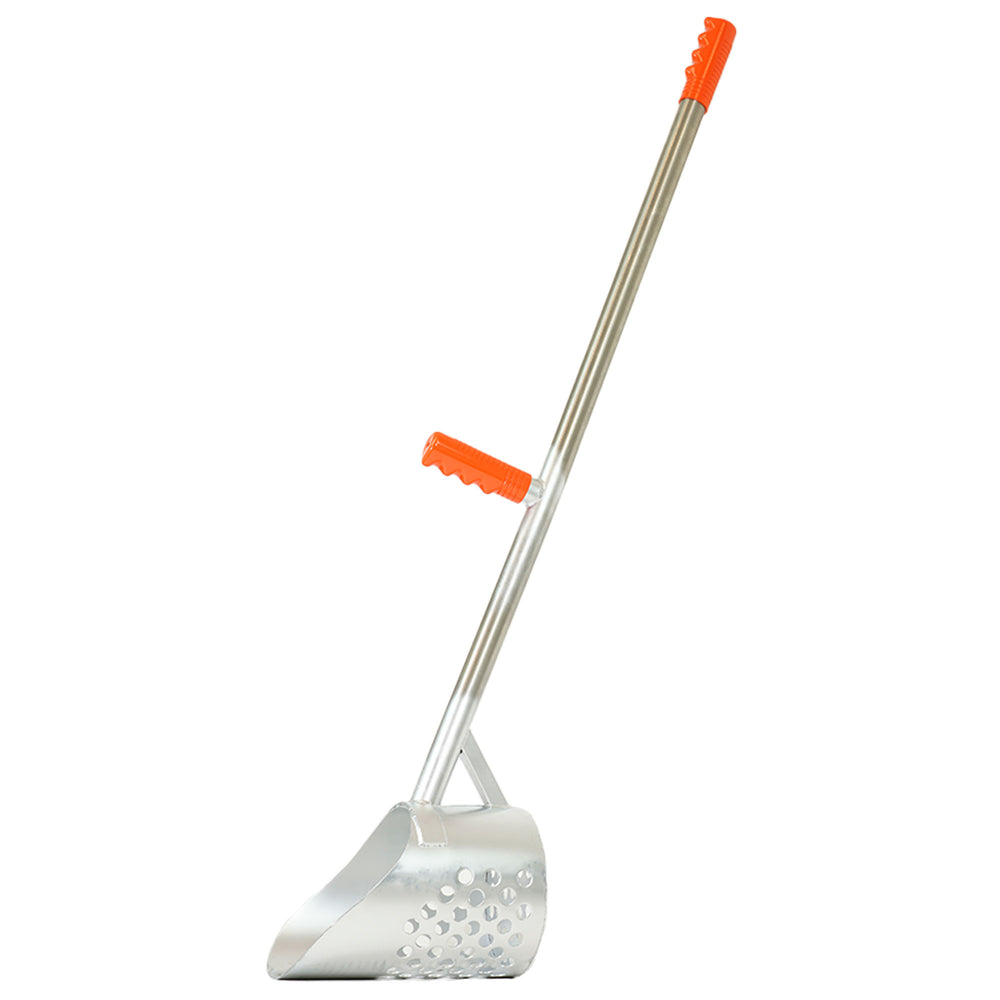 The RTG 7" Hercules Stainless Water Scoop is BIG. The bucket is 7” in diameter by 10” long. It is made with 14 gauge 304 stainless steel with 5/8" holes punched throughout the bucket. The 1 ¼” diameter handle is stainless steel with a soft rubber grip for comfort. There is a 1" stainless steel brace welded to the scoop bucket for added strength. There is a round stainless bracket welded onto the bucket and handle for support and for use as a foot kicker. We have added a balance grab handle so you can pick the scoop up easier when it is filled with sand. The grab handle is placed 14" up from the base of the scoop bucket. It also has a rubber hand grip for comfort. This scoop is made for shallow-water hunting.